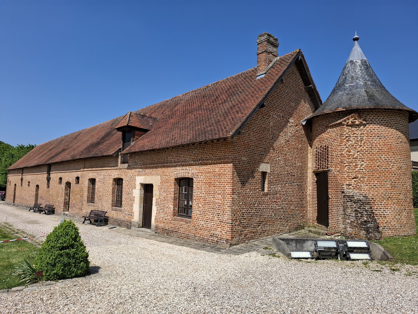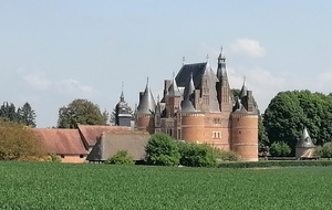 10 km plus loin et après un pique-nique bien mérité arrêt au château de MARTAINVILLE EPREVILLE ( 15s ) , le plus imposant de la journée classé monument historique : sa belle façade flanquée de 2 grosses tours nous impressionne et toujours en petites briques rouges .