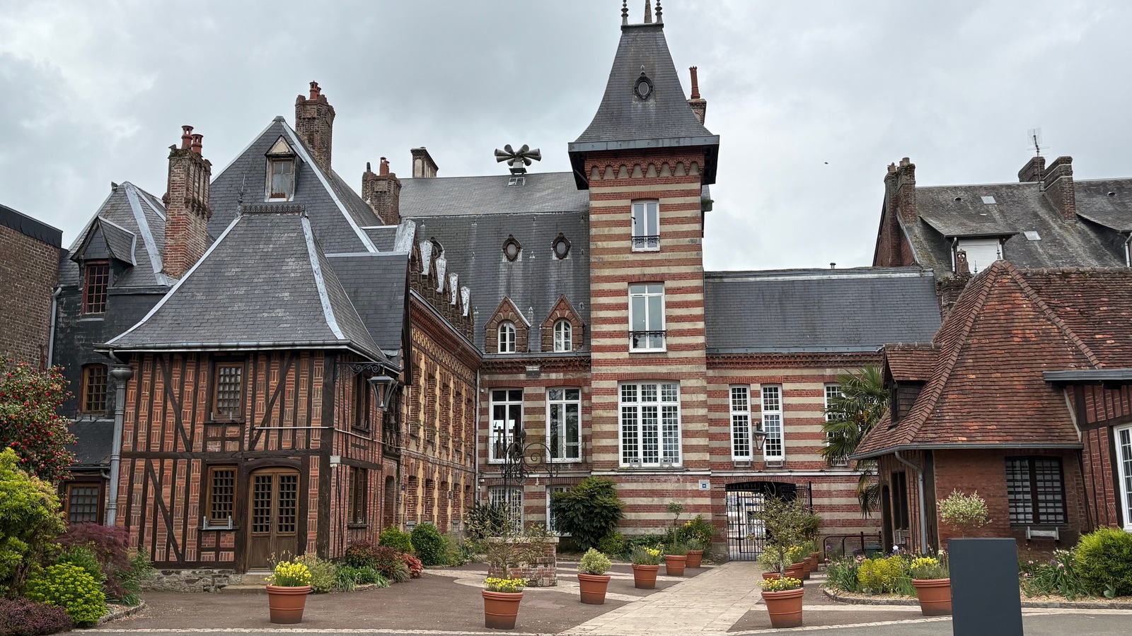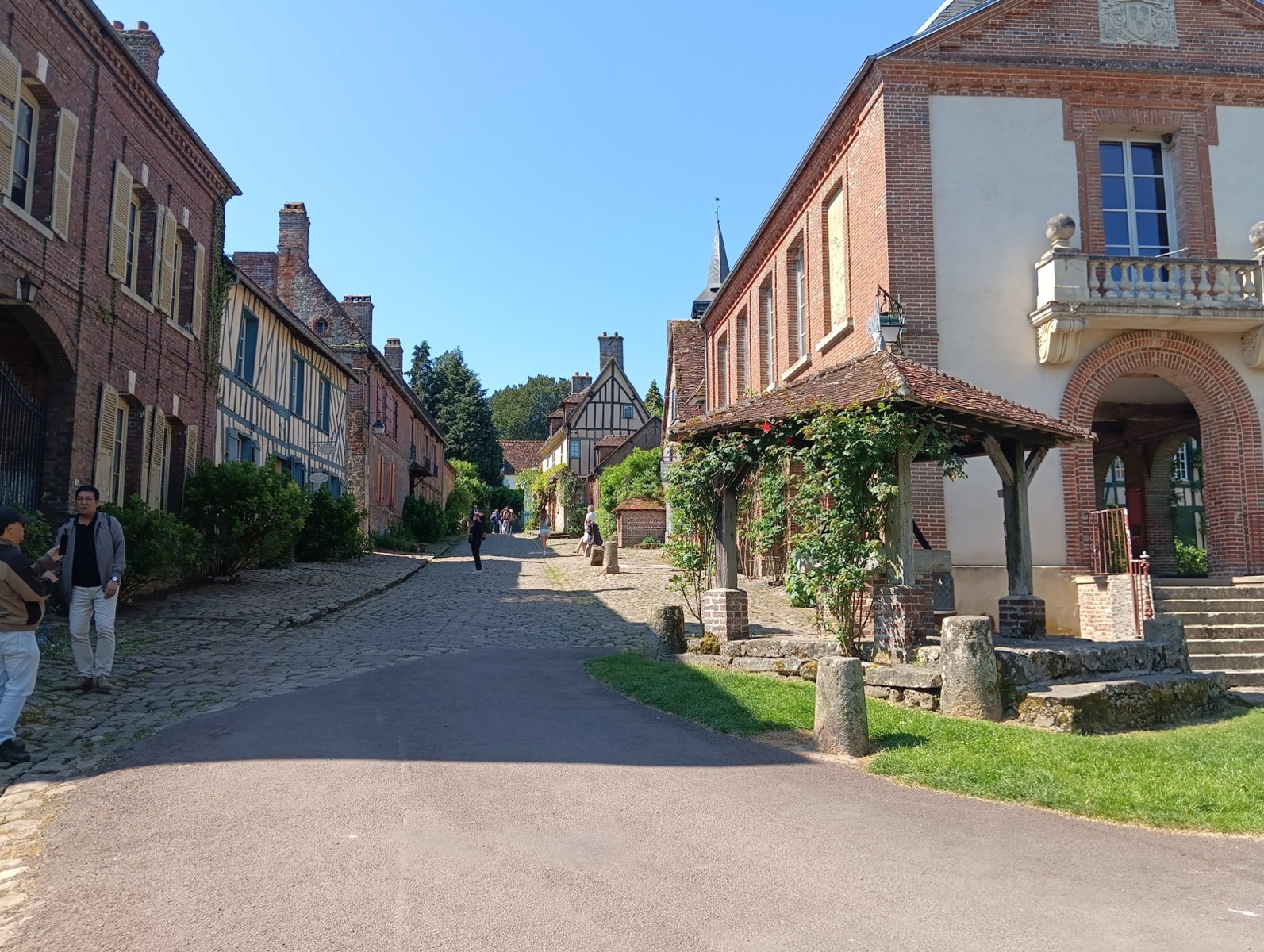 Gerberoy, classé parmi les plus beaux villages de France, avait déjà revêtu pour nous sa parure de printemps avec ses nombreux rosiers fleurissant ses rues pavées et bordées de maisons anciennes très colorées. Ce décor enchanteur a servi de cadre au tournage de nombreux films. Au pied du village, se trouvaient le moulin et la ferme Vidame dignes de notre attention. Une halle en bois, des maisons du XVIIIe s. et un château du XIXe s. très tarabiscoté nous attendaient très patiemment à Gaillefontaine.