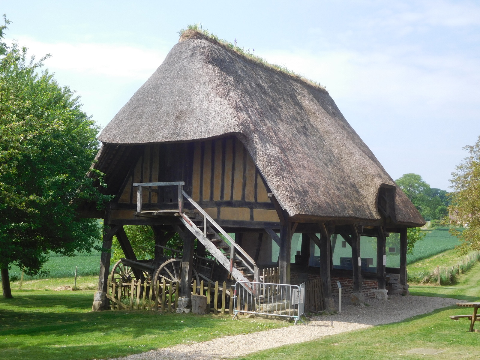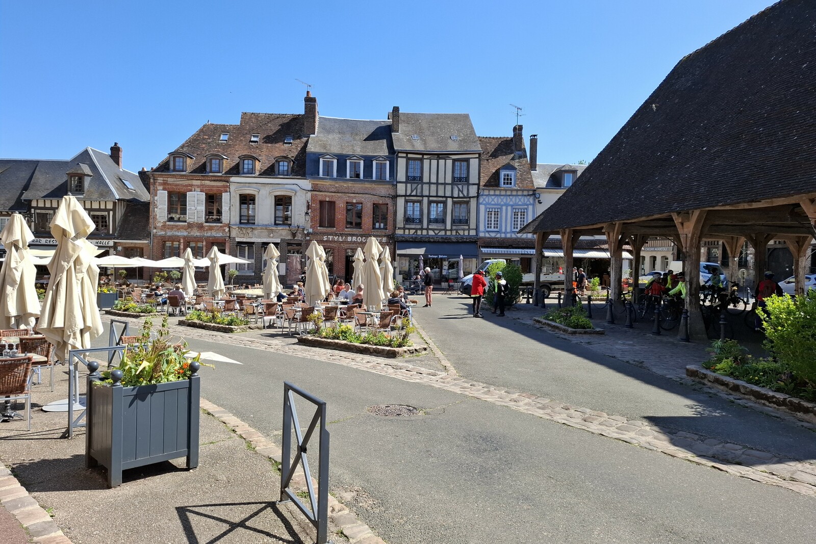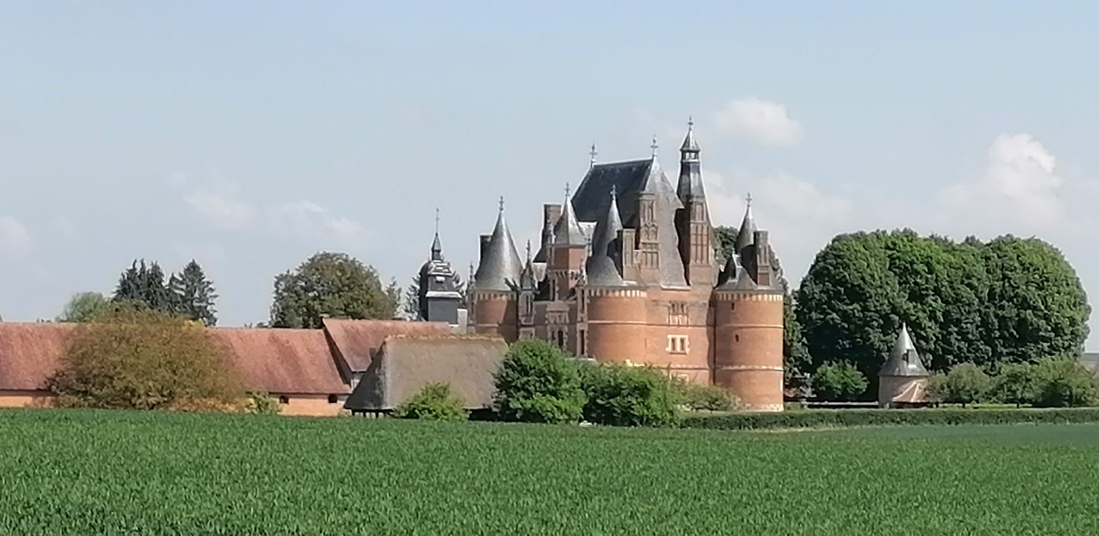 En sillonnant les petites routes de campagne, nous avons découvert de jolies prairies verdoyantes, des champs de colza et de lin, une grande variété de cultures. On se sentait en harmonie avec la nature. Nous avans traversé des petits bourgs aux maisons de briques et à colombages mais souvent il manquait les deux âmes du village : la boulangerie et surtout le café.